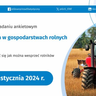 Urząd Statystyczny w Zielonej Górze informuje, że w dniach 12-31 stycznia 2024 r., ankieterzy będą przeprowadzać Badanie Koniunktury w Gospodarstwach Rolnych. Zachęcamy mieszkańców do uczestnictwa w badaniu i udzielanie informacji ankieterom.