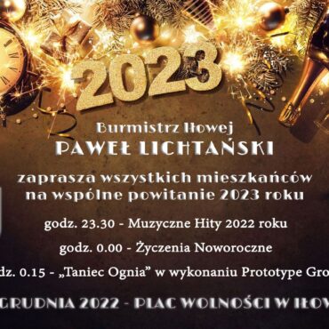 W sylwestrową noc, Burmistrz Paweł Lichtański serdecznie zaprasza wszystkich mieszkańców gminy Iłowa do wspólnego odliczania ostatnich chwil Starego i radosne powitanie Nowego Roku.