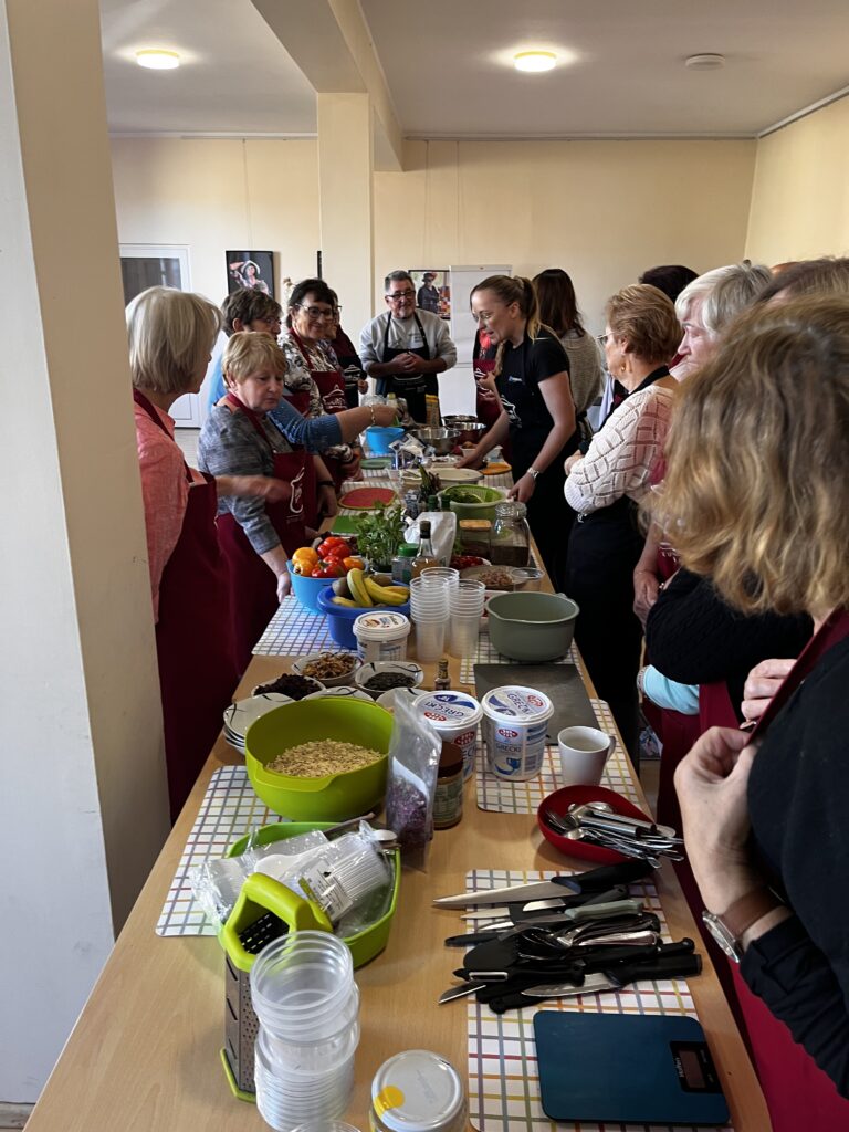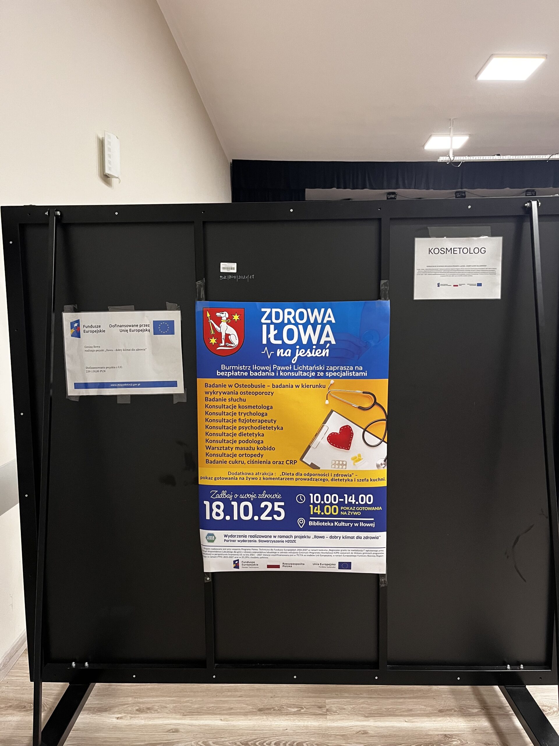 18 października 2025 r. w Bibliotece Kultury w Iłowej odbyło się wydarzenie prozdrowotne z bogatą ofertą konsultacji i profilaktyki. Mieszkańcy korzystali z porad specjalistów (kosmetolog, trycholog, fizjoterapeuta, psychodietetyk, dietetyk, podolog, ortopeda), bezpłatnych badań (poziom cukru, ciśnienie, badanie wzroku), z badań w kierunku wykrywania osteoporozy w Osteobusie, a także z warsztatów kobido. Dodatkową atrakcją były warsztaty kulinarne dla seniorów i młodzieży oraz pokaz gotowania na żywo.