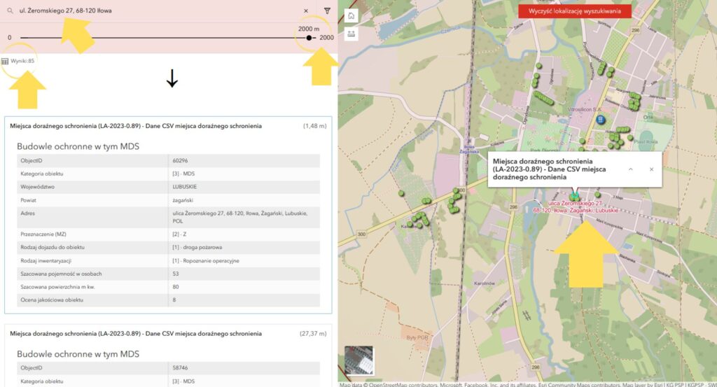 📍 Krok 3. Wyszukaj. System wskaże, ile MDS mamy w odległości 2000 m od nas