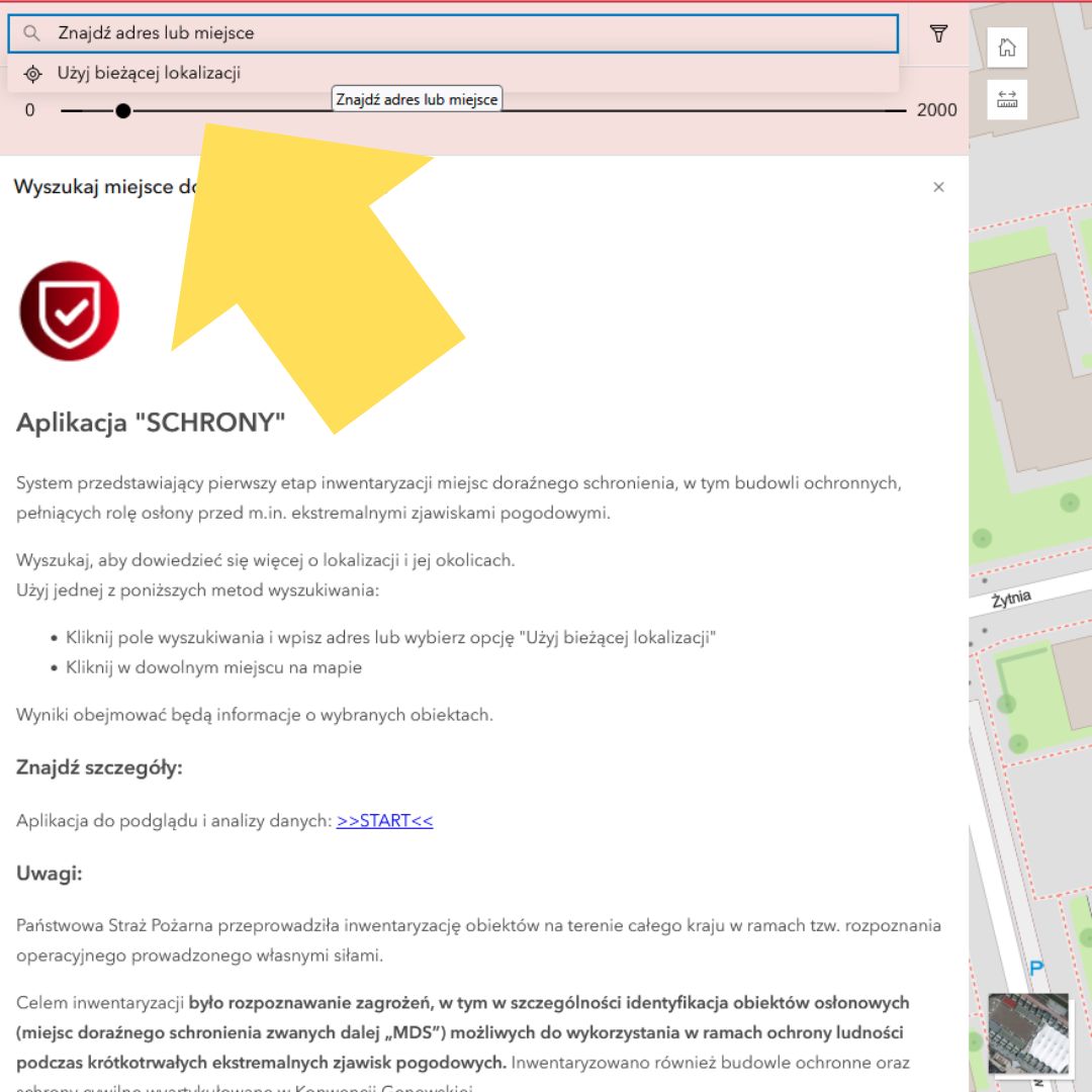 Aplikacja SCHRONY! To system przedstawiający Miejsca Doraźnego Schronienia (zwane MDS) – czyli piwnice i wyznaczone lokalizacje, przygotowany na polecenie Ministerstwa Spraw Wewnętrznych i Administracji.