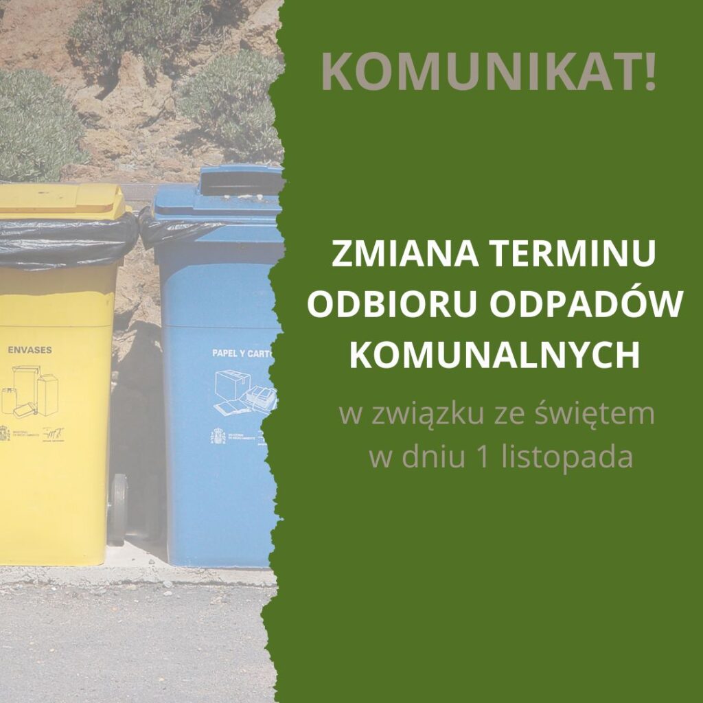 Uprzejmie prosimy o wystawienie w tym dniu pojemników i worków z odpadami na pobocze drogi lub chodnika.