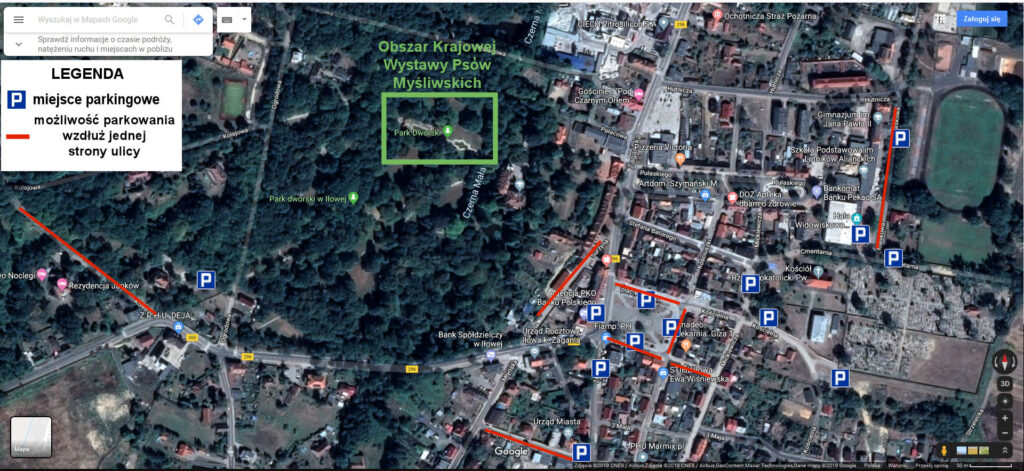 Zapraszamy do zapoznania się z mapami parkingów dla gości przybywających na święto. Spodziewamy się dużej liczby odwiedzających wystawę psów myśliwskich, prosimy zatem mieszkańców o pozostawienie tego dnia pojazdu na własnej posesji i piesze dotarcie do Parku Dworskiego.